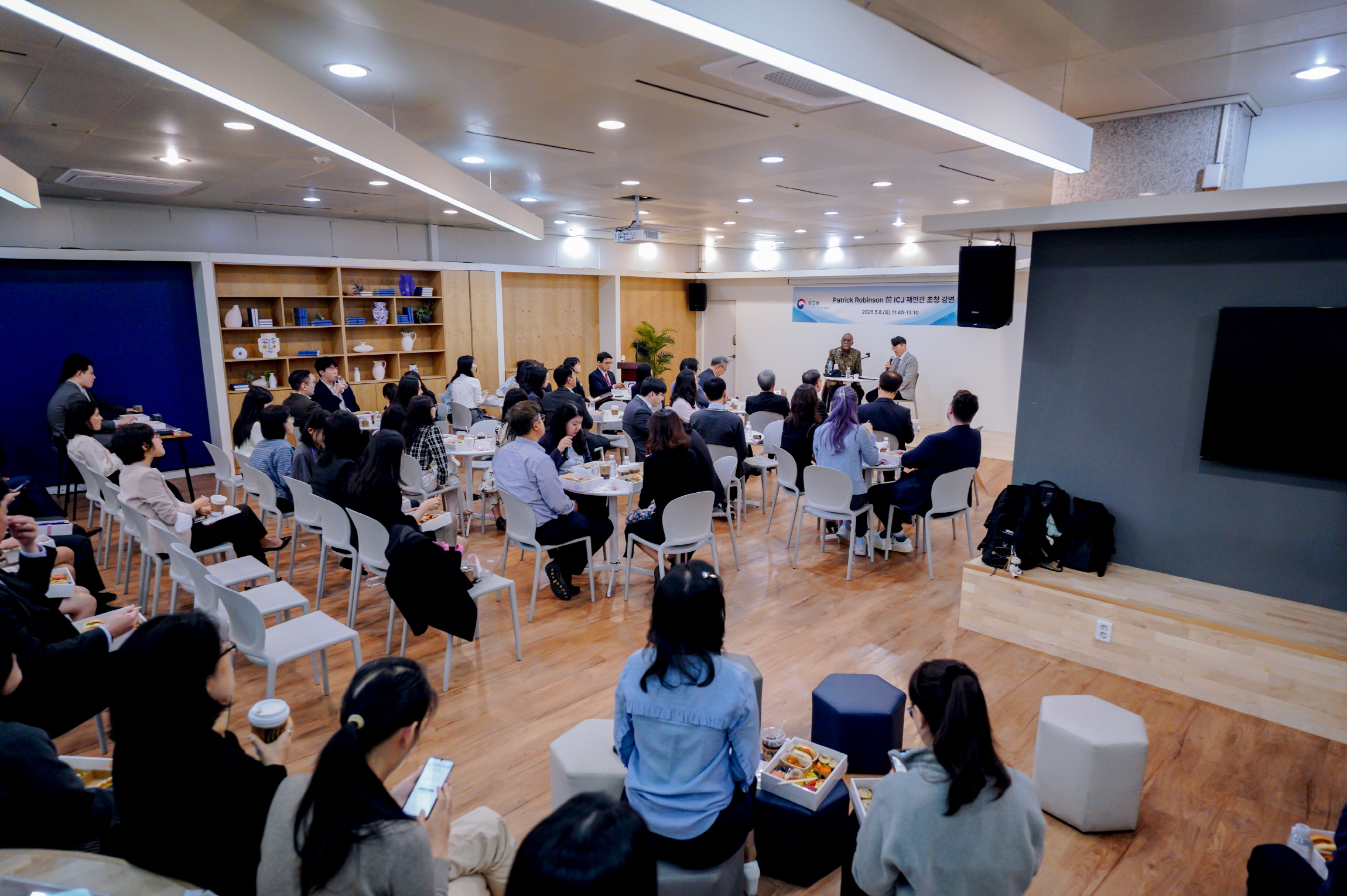 외교부는 5.8.(목) 「패트릭 립튼 로빈슨(Patrick Lipton Robinson)」 前 국제사법재판소(ICJ) 재판관을 초청하여 외교부 직원, 국내 국제법 학자, 대학·대학원생 등 90여 명을 대상으로 특별 강연을 개최했습니다.
